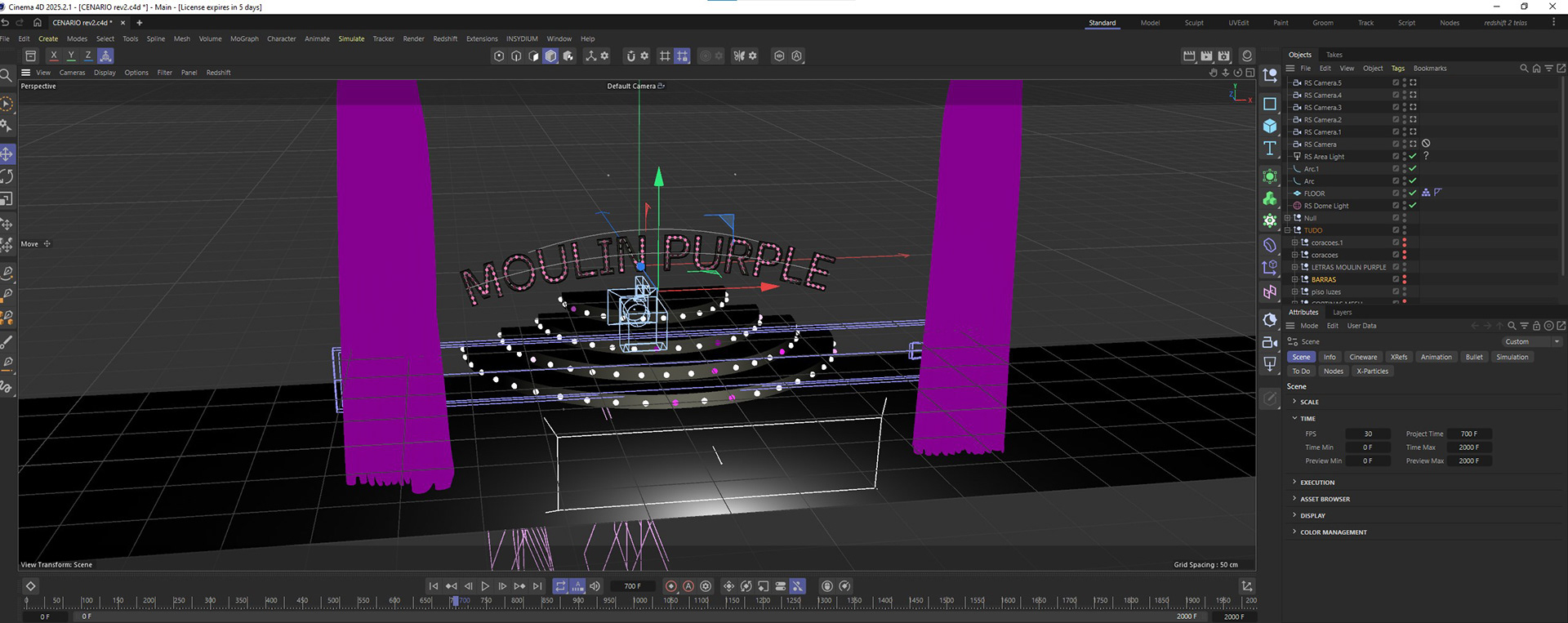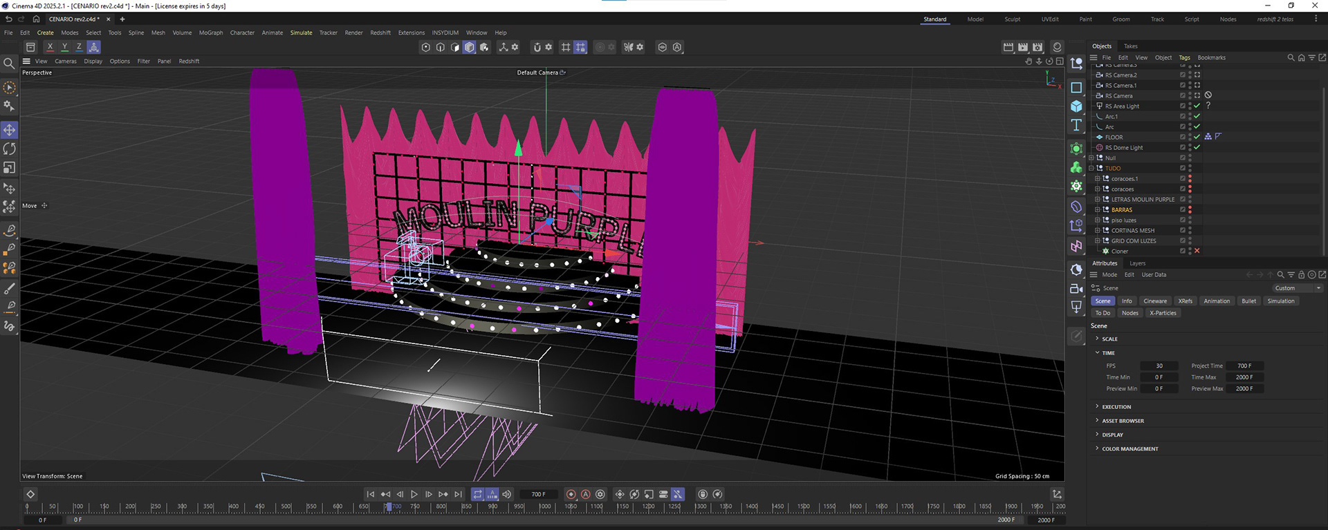 Cenário 3d e animado feito no CINEMA 4D para festa chamada MOULIN PURPLE